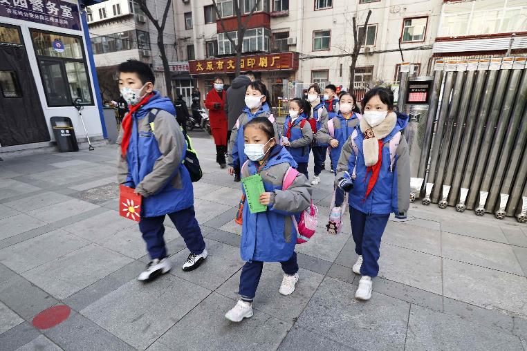 2月7日,太原新建路小學的學生返校開學。(中新社) 指南明確,各級各類學校要組織工作力量加強師生日常健康監測,提醒督促師生出現發熱、乾咳、乏力、咽痛等症狀時,不帶病到校工作或學習。開學返校前一周,學生居家每日開展測量體溫和新型冠狀病毒感染相關臨床症狀觀察等健康自測,出現發熱、乾咳、乏力、咽痛等症狀要檢測抗原或核酸,如檢測結果確認感染病毒,須如實報告學校,延遲返校。師生返校後連續7天開展健康監測,盡量減少聚集性活動。師生入校時測量體溫,發現發熱等症狀師生及時採取留觀等相應措施。 高等學校不再開展全員核酸篩查,對校內從事餐飲、物流、保安、保潔等重點人員按照有關規定開展核酸或抗原檢測。除跨地區返校入學確有必要外,高校師生出入校門和校園公共區域不要求提供核酸證明。 中小學校和幼兒園根據實際需要和當地條件,中小學校和幼兒園開展師生篩檢、輪檢、抽檢等適宜的抗原或核酸檢測,師生出入校門不再提供核酸證明,其他外來人員進入校園須提供核酸或抗原陰性證明等。 【編輯:丘志彬】