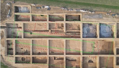內蒙古巴林左旗遼上京皇城遺址全景和發掘位置。國家文物局供圖 內蒙古巴林左旗遼上京遺址發現的一號建築基址,是遼上京皇城南部區域內規模最大的建築基址,該建築在遼金兩代經歷過三次大規模營建,建築軸線、朝向沿用未變,建築規模超過了目前發掘所見的遼代宮城內宮殿建築,推斷應為都城內極為重要的皇家建築,根據《遼史》記載,遼上京皇城西南分布孔廟、國子監、寺院和道觀等遼代早期建築,為確認一號建設基址的性質提供了線索。 【編輯:丘志彬】