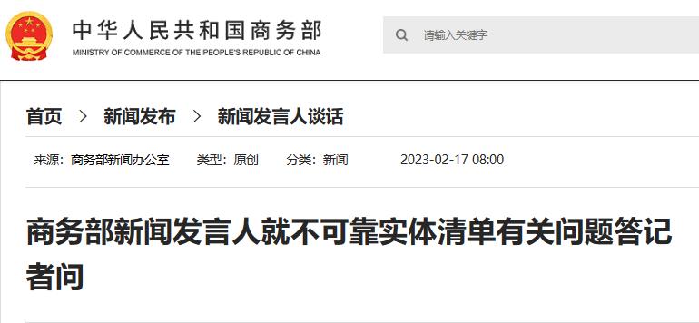 香港新聞網2月17日電 中國商務部網站2月17日消息,商務部新聞發言人就不可靠實體清單有關問題答記者問。