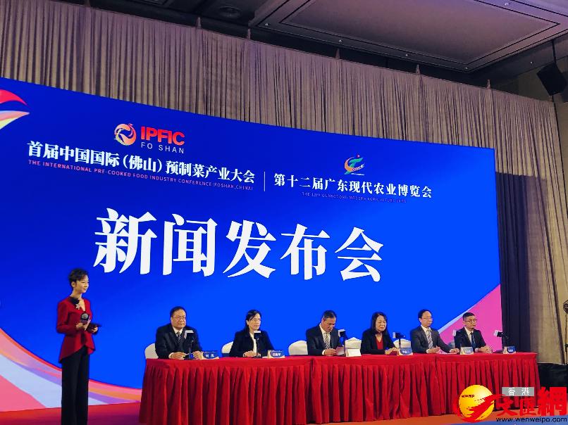 首屆中國國際(佛山)預製菜產業大會新聞發布會舉行。(香港文匯網記者方俊明 攝) 佛山、梅州、潮汕預製菜已出口香港 記者了解到,佛山去年首批出口香港的預製菜品,包含了御鮮鋒酸菜魚、冬陰功海鮮什錦等產品。來自梅州的客家預製煲仔飯也已進入香港市場。而來自潮汕地區的鹵鵝、叉燒肉、五花肉、鹵大腸等潮汕傳統美食亦以預製菜的形式,走進香港的便利店、餐廳等銷售渠道。數據顯示,廣東去年出口預製菜達83.4萬噸,出口額超310億元。 首個國際性預製菜專業展將佛山舉行 廣東近年大力發展預製菜等農產品精深加工,率先出台“預製菜十條”措施、首個規劃建設省級預製菜產業園、制定全國第一套預製菜標準體系等。行業數據顯示,去年廣東預製菜市場規模增速逾31%;而全國預製菜產值去年增加了1200億元(人民幣,下同),預計到2026年全國預製菜市場將超過1萬億元產值,較目前大增1.5倍。 作為全國舉辦的首個國際性預製菜專業展,首屆“中國國際(佛山)預製菜產業大會”將於3月3日在佛山潭洲國際會展中心揭幕,吸引海內外超800家預製菜產業鏈企業參會參展,預計近千家知名採購商“看展選菜”。大會期間,還將發布“胡潤中國預製菜生產企業百強榜”、《2022年中國預製菜產業發展白皮書》等,並將舉行東西協作和南北合作、國際合作、金融合作等一批項目簽約,以及“廣東省預製菜出海產業聯盟”授牌儀式。