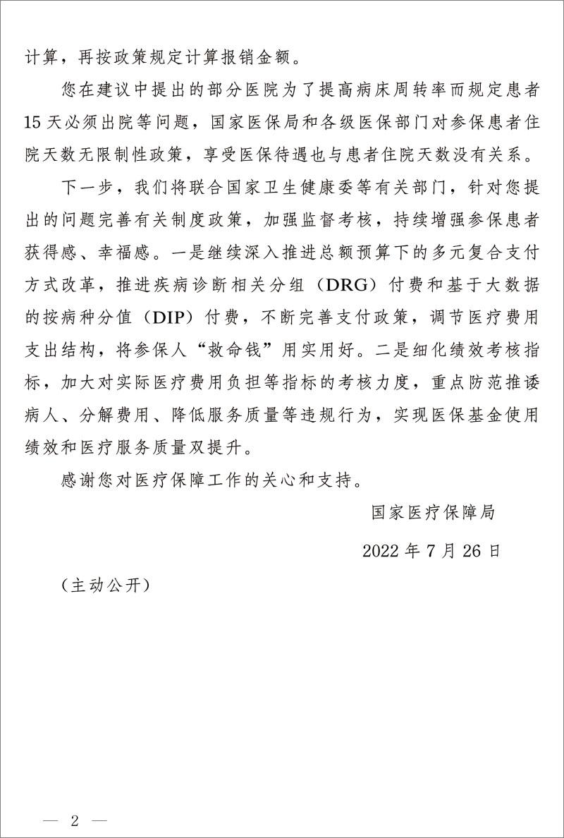 為提高周轉率,患者15天必須出院?國家醫保局回復分享到: