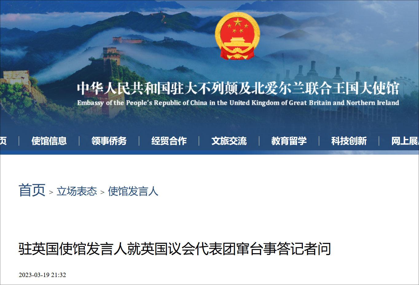 香港新聞網3月20日電 中國駐英國大使館網站3月19日消息,駐英國使館發言人就英國議會代表團竄台事答記者問。