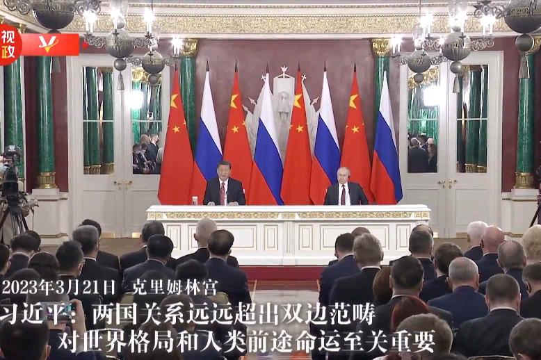 習近平指出,這是我時隔3年多再次來到莫斯科,也是我連任中國國家主席後首次出訪和對俄羅斯進行國事訪問。10年來,我同普京總統建立了密切關係,保持戰略溝通,推動兩國戰略協作取得豐碩成果。 習近平強調,我同普京總統一道回顧了10年來兩國關係發展的成果,一致認為,兩國關係遠遠超出雙邊範疇,對世界格局和人類前途命運至關重要。雙方本著睦鄰友好、合作共贏原則推進各領域交往合作。在新的歷史條件下,雙方將以寬廣視野、長遠眼光看待和把握中俄關係,為人類進步事業作出更大貢獻。 【編輯:丘志彬】