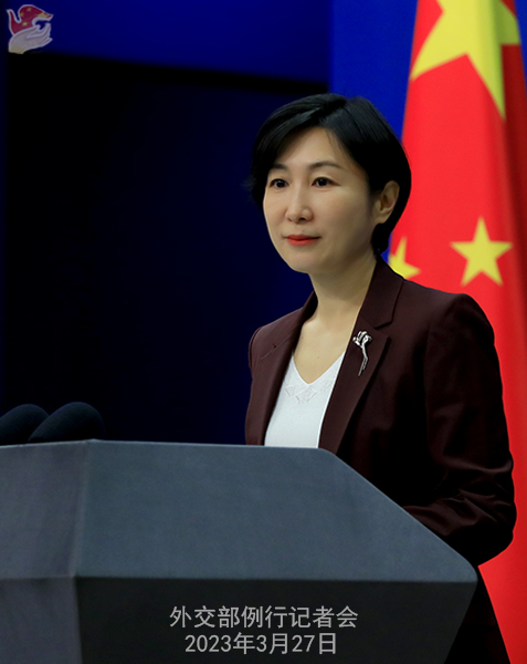 香港新聞網3月28日電 據中國外交部網站消息,3月27日,外交部發言人毛寧主持例行記者會。