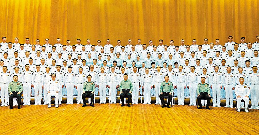 ◆4月11日,中共中央總書記、國家主席、中央軍委主席習近平到南部戰區海軍視察調研。這是習近平在聽取南部戰區海軍有關工作匯報後發表重要講話。 新華社 四月的湛江,碧波湧動,春意盎然。上午10時許,習近平來到南部戰區海軍機關。在熱烈的掌聲中,習近平親切接見南部戰區海軍官兵代表,同大家合影留念。