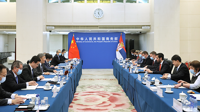 王文濤表示,塞爾維亞是中國“鐵桿朋友”,近年來,在兩國元首戰略引領下,中塞不斷加強戰略對接,積極共建“一帶一路”,經貿務實合作不斷走深走實,成為中國—中東歐國家合作的典範。中方願與塞方一道,以商談中塞自貿協定為契機,進一步促進兩國貿易投資自由化和便利化,激發雙邊經貿合作潛力,全方位提升中塞經貿合作水平,為深化兩國全面戰略夥伴關係注入更多動力。 莫米洛維奇表示,塞將對華合作作為其經濟發展的優先事項。近年來,雙邊貿易快速發展,塞對華出口增長迅速,兩國在投資和基礎設施領域合作成果豐碩。塞中自貿協定將為雙邊經貿合作發展創造良好環境、提供有力保障,塞方願與中方共同努力,推動自貿協定談判早日完成。 會後,雙方共同簽署《中華人民共和國商務部與塞爾維亞共和國國內和對外貿易部關於啟動中國—塞爾維亞自由貿易協定談判的諒解備忘錄》,宣佈正式啟動中塞自貿協定談判。 【編輯:丘志彬】