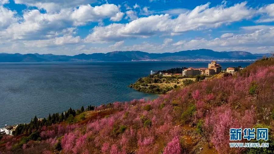 昆明滇池景色 新華社 春城昆明,一座有著花樣浪漫情懷的城市,金馬碧雞坊、西山、滇池、雲南民族村、世界園藝博覽園……旅遊點眾多,景色美不勝收。