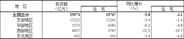 表22023年1-3月份東中西部和東北地區房地產開發投資情況