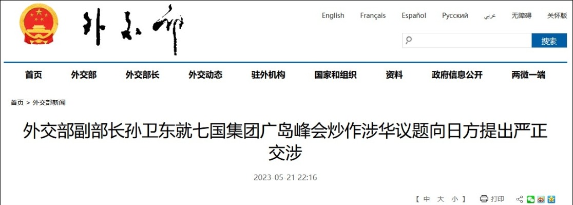 台灣問題是中國核心利益中的核心,一個中國原則是國際社會普遍共識和國際關係基本準則。香港、新疆、西藏事務純屬中國內部事務。眾所周知,當前台海和平的最大威脅是“台獨”分裂行徑和外部勢力對其縱容支持,“改變現狀”的帽子完全扣不到中國頭上。七國集團應立即停止干涉中國內政,停止破壞台海和地區和平穩定的不負責行徑。 中國在東海、南海問題上的立場是一貫而明確的。釣魚島及其附屬島嶼是中國固有領土。中國對南海諸島及其附近海域擁有無可爭辯的主權。南海仲裁案所謂裁決嚴重違反包括《聯合國海洋法公約》在內的國際法,是非法的、無效的,中方不接受、不承認。我們願通過談判協商妥善處理海上分歧,但將堅定不移維護自身領土主權和海洋權益。有關國家利用涉海問題給中國製造麻煩的企圖不得人心,不會得逞。 關於經濟和網絡安全,正是美國大搞“築墻設壘”、強推“脫鉤斷鏈”,嚴重擾亂全球產業鏈供應鏈,威脅世界經濟恢復發展。正是美國憑藉互聯網領域絕對優勢實施無差別網絡控制和竊密,大肆掠取政治、軍事和商業利益。如果七國集團真的想實現經濟和網絡安全,就應敦促美國改弦更張,消除任何單邊主義、保護主義和霸淩行為,回到維護市場經濟規則和安全網絡空間的正道上來。 七國集團作為美國和西方國家拉起的“小圈子”,頤指氣使指責他國、人為製造陣營對抗的做法已經越來越沒有市場,受到世界上多數國家的詬病。日本作為本屆七國集團會議主席國,不顧中方關切頑固挑動涉華議題,充當了不光彩的角色。我們嚴正敦促日方停止在國際關係和地緣政治上挑撥操弄的伎倆,不要在損害中日關係的錯誤方向上越走越遠。 【編輯:丘志彬】