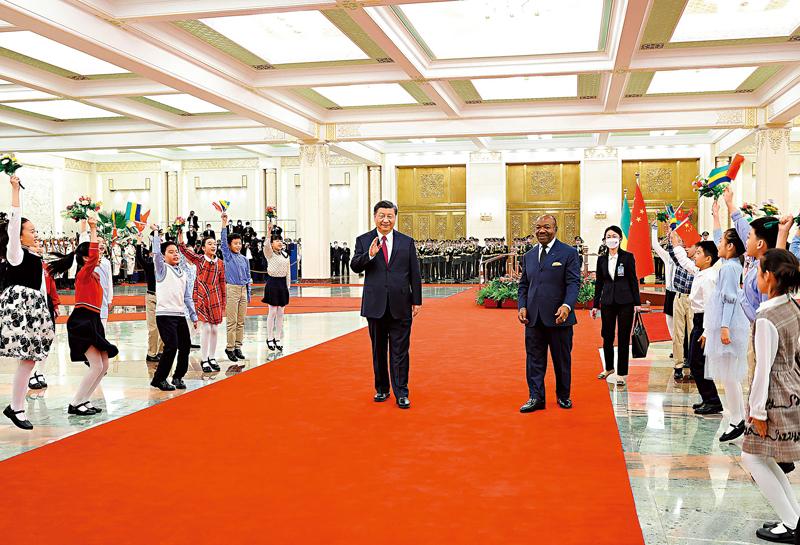 4月19日下午,國家主席習近平在北京人民大會堂同加蓬總統邦戈舉行會談。 新華社務 實合作打造南南合作典範 習近平指出,當今世界,多重挑戰和各種危機交織疊加。中國和非洲國家比以往任何時候都更需要加強團結合作。雙方要繼承弘揚“中非友好合作精神”,堅持和平共處五項原則等國際關係基本準則,堅決反對一切形式的霸權主義和強權政治,反對干涉別國內政,推動構建人類命運共同體。中方堅定支持非洲走獨具特色、獨立自主的發展道路,堅定支持非洲推進糧食安全、工業化進程、綠色發展,堅定支持非洲成為世界政治、經濟、文明發展的重要一極,願以自身新發展為非方提供新機遇,將中非務實合作打造成南南合作和國際對非合作典範。