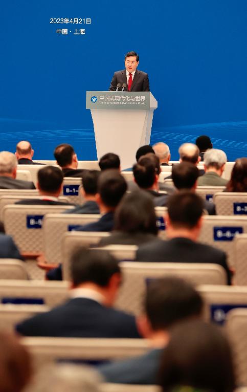 香港新聞網4月21日電 2023年4月21日,國務委員兼外交部長秦剛出席“中國式現代化與世界”藍廳論壇開幕式並發表主旨演講。