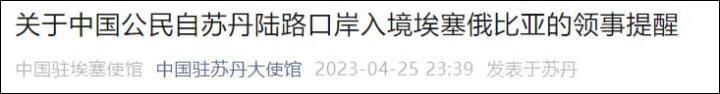 協助中國公民撤離,中國駐蘇丹大使館深夜4連發!香港新聞網4月26日電 4月25日晚,中國駐蘇丹大使館微信公眾號連續發佈四條有關撤僑的安全提醒。