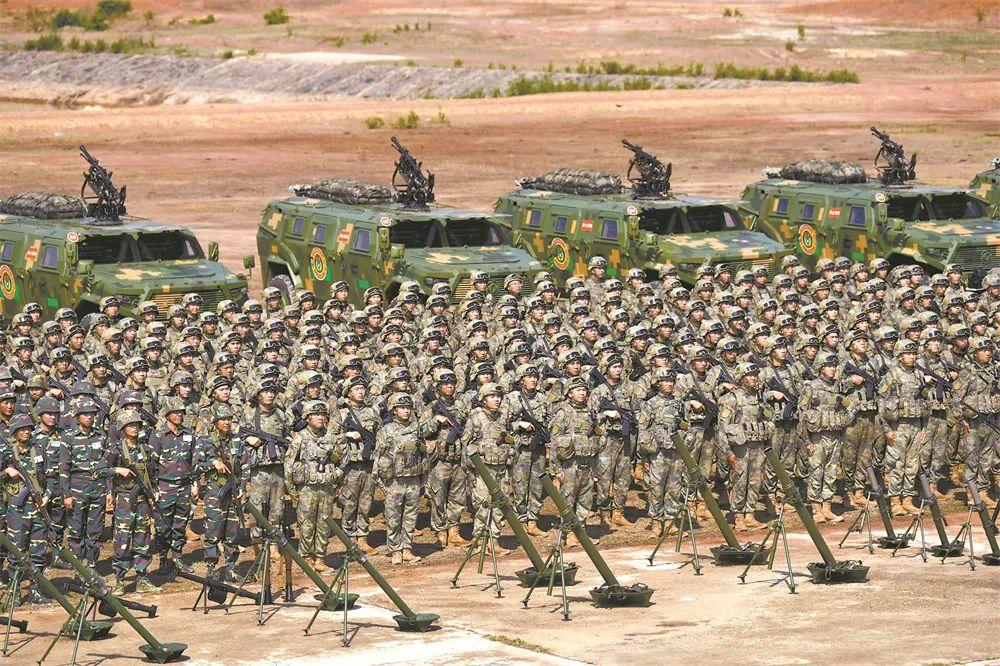 中老參演官兵在開始儀式上整齊列隊。陽吉成攝 開始儀式上,中老兩軍參演官兵整齊列隊、精神抖擻。此次聯演,既是兩軍交流經驗、共同提高的重要平台,更是兩國加深友誼、深化合作的務實舉措,將有力推動共建高標準、高質量、高水平的中老命運共同體。 據解放軍報報道,此次聯演以“打擊跨國武裝犯罪集團違法犯罪活動”為背景,中老雙方參演官兵將圍繞“山嶽叢林地陣地進攻行動”這個主題,共同開展多種武器射擊、單兵綜合演練、分隊戰術、戰鬥勤務等多個專業課目的訓練,提高兩軍部隊遂行反恐任務的聯合行動能力。 據了解,聯演期間,中方參演部隊將同步開展向演習地域周邊學校贈送物資、學習用品等活動。雙方將組織籃球友誼賽、拔河和文藝表演等交流活動,進一步增進兩軍官兵友好情誼。