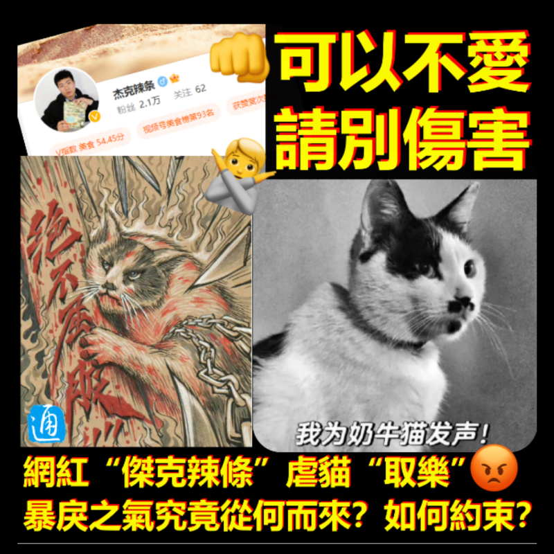 網紅虐貓“取樂” 暴戾之氣從何而來?如何約束?香港新聞網5月15日電 近日,一網紅憑藉“喪心病狂”的行為一舉霸榜社交平台,亦在國際上產生了不小的影響。但這次,卻不是什麼“好人好事”或“見義勇為”,而是網紅“傑克辣條”因虐貓受到國內外網民關注以及聲討指責。