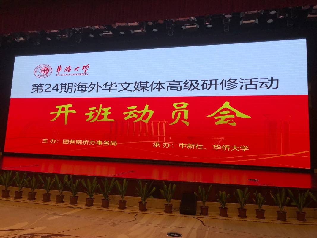 (香港中通社圖片) 此次活動由中國國務院僑務辦公室事務局主辦,中國新聞社、華僑大學等承辦,研修內容包括中國歷史與文化、中外文明交流互鑒以及實地參訪考察等。華僑大學繼續教育學院院長姚培生在開班儀式上致辭表示,此次培訓主題突出、內容豐富。希望各位研修班的學員在華大培訓期間深入交流,學有所獲,學有所成。 據悉,海外華文媒體負責人及編輯記者將走訪晉江五店市華僑傳統街區、泉州開元寺和府文廟、廈門鼓浪嶼等地進行實地採訪。之後還會分赴江蘇、新疆、廣西三地考察。研修活動將持續至5月25日。(完) 【編輯:刘春】