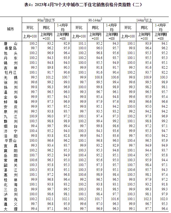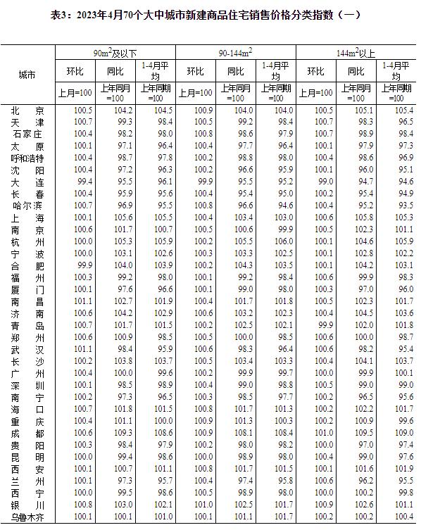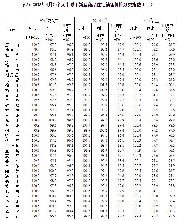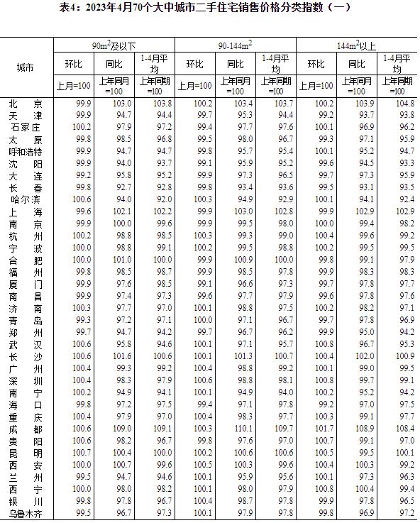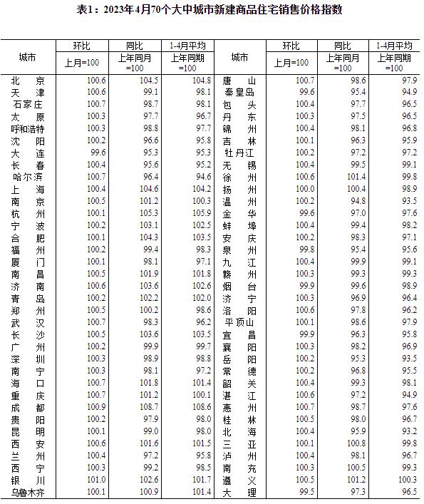 國家統計局:4月份70城商品住宅售價環比整體漲幅回落香港新聞網5月17日電 據國家統計局網站消息,2023年4月份,70個大中城市中商品住宅銷售價格環比上漲城市個數減少,同比上漲城市個數增加。70個大中城市商品住宅銷售價格環比整體漲幅回落、二手住宅環比漲幅回落更為明顯,各線城市商品住宅銷售價格同比上漲或降勢趨緩。