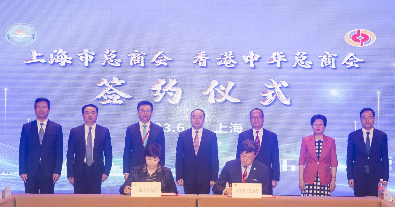 香港中總與上海市總商會簽約 香港中總姚祖輝副會長及上海市總商會馮毅梅副會長分別代表雙方簽署合作備忘錄。上海市委常委、統戰部部長陳通,中總會長蔡冠深,中聯辦協調部副部長徐小林,上海市委統戰部常務副部長、市僑辦主任黃紅,市僑聯主席齊全勝,上海市國際貿易促進委員會會長、市國際商會會長周敏浩,普陀區委書記姜冬冬,上海虹口區委書記李謙,以及兩地一眾企業家代表共同見證。上海市委統戰部副部長、市工商聯黨組書記、市總商會常務副會長王霄漢主持儀式。 訪問團亦與駐滬的港人港商進行會面交流,並與上海市香港商會簽署合作框架協議,共同促進滬港全面加強商貿合作。上海市委統戰部黃紅常務副部長、特區政府駐上海經濟貿易辦事處蔡亮主任、上海市香港商會黃有權會長等出席。 為滬港企業搭建交流平台 香港中總與上海市總商會亦首次舉辦滬港企業家圓桌會,匯聚兩地工商企業領導,為深化推進滬港雙方經貿與服務業合作交流真知灼見。