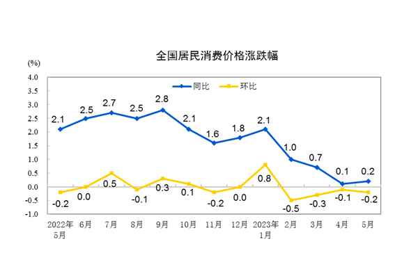 中國5月CPI同比上升0.2%分享到: