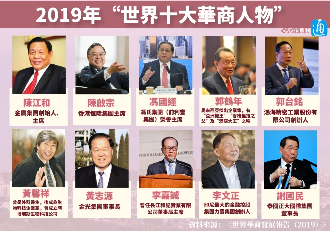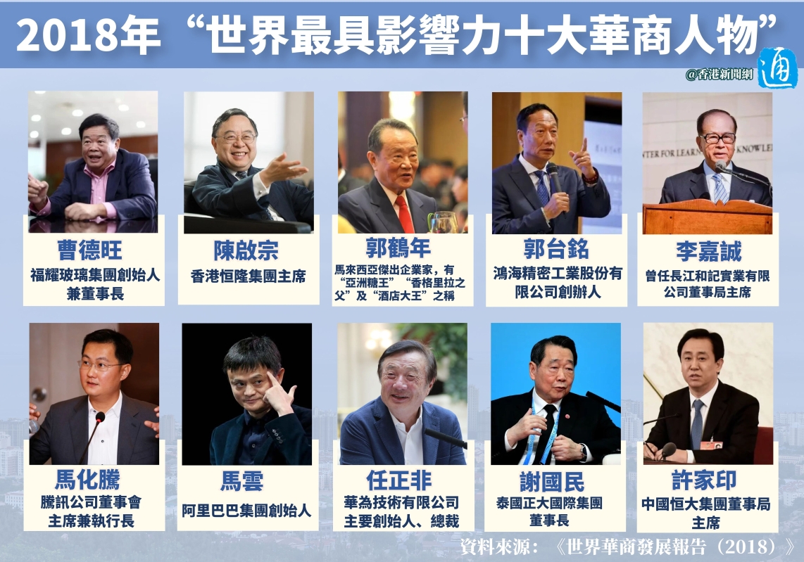 香港新聞網6月20日電 第十六屆世界華商大會將於6月24日至26日在泰國曼谷舉行。華商的發展史也是中國參與和推動全球化的融入史,折射出中國改革開放與全球市場的力量。你知道世界十大華商都有誰嗎?