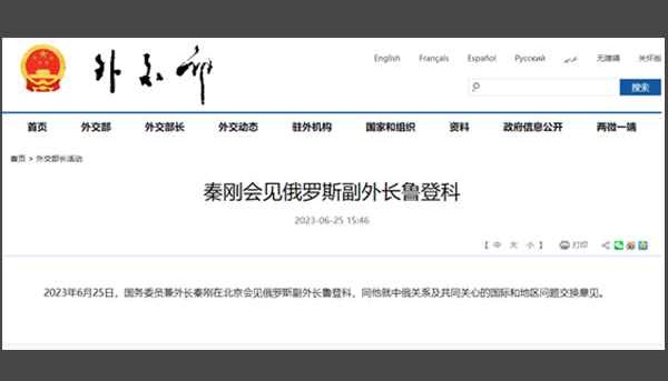 香港中通社6月25日電 據中國外交部網站25日消息,中國國務委員兼外長秦剛在北京會見俄羅斯副外長魯登科,同他就中俄關係及共同關心的國際和地區問題交換意見。