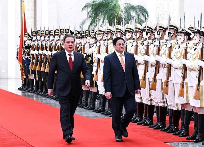 6月26日上午,國務院總理李強在北京人民大會堂同來華進行正式訪問的越南總理範明政會談。這是會談前,李強在人民大會堂北大廳為範明政舉行歡迎儀式。新華社記者 饒愛民 攝 李強表示,中越有着深厚的傳統友誼,兩國利益交融,命運與共。今年是中越建立全面戰略合作夥伴關係15周年。在習近平總書記和阮富仲總書記引領下,兩黨兩國關係發展保持良好勢頭。在複雜動盪的世界局勢中,我們要更加註重維護發展好兩國關係,共同推進社會主義事業,攜手構建更加緊密的命運共同體,在新起點上把雙邊關係推上新台階,為世界和平發展注入更多穩定性和正能量。 李強指出,中國願同越南做好戰略對接,以高質量共建“一帶一路”為主線,用好中越雙邊合作指導委員會機制,統籌推進執法安全、經貿投資、科教文衞等領域合作,把合作的蛋糕越做越大。雙方要加快商簽“一帶一路”和“兩廊一圈”對接合作規劃綱要。深入挖掘兩國鐵路運輸效能潛力,加快邊境標準軌鐵路聯通,推進口岸開放升格和設施聯通。擴大農產品貿易、投資、能源等領域合作。增開直航航班,增進文旅、教育、青年等領域交流。希望越南政府繼續為中國企業赴越投資興業創造良好營商環境。中方願同越方踐行真正的多邊主義,加強在聯合國等多邊機構中的協調配合,深化中國-東盟、瀾滄江-湄公河等框架內合作。 李強強調,中方願同越方堅持通過對話協商管控分歧,推進海上務實合作,加快“南海行為準則”磋商,避免採取使形勢複雜化、擴大化的行動。 范明政表示,越中兩黨兩國人民感情深厚,越方始終銘記中方為越南爭取民族獨立、推動國家發展提供的巨大幫助,將對華關係視作越外交政策的頭等優先。親望親好,鄰望鄰好。越方高度評價中方防控新冠疫情、推進對外開放和經濟社會發展取得的巨大成就,支持中方在習近平新時代中國特色社會主義思想指引下全面建設社會主義現代化國家,願學習借鑒中方寶貴經驗,進一步深化越中全面戰略合作夥伴關係。中國的發展為地區和世界穩定繁榮作出重要貢獻。越方堅定奉行一個中國政策,積極支持參與共建“一帶一路”倡議和全球發展倡議,願同中方深化經貿、投資、基礎設施建設、衞生、科技、人文等領域交流合作,加強多邊協調配合,實現共同發展、共同繁榮。越方願同中方管控好分歧,維護海上和平穩定。 會談後,兩國總理共同見證簽署海上合作、市場監管、口岸建設等多項雙邊合作文件。 會談前,李強在人民大會堂北大廳為范明政舉行歡迎儀式。 【編輯:丘志彬】