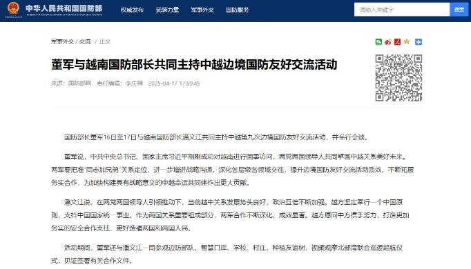 李尚福說,中越是山水相連的社會主義友好鄰邦。去年中共二十大勝利閉幕後,習近平主席首先邀請阮富仲總書記訪華,體現了兩黨兩國的特殊友好關係。作為兩國關係的重要組成部分,中越兩軍關係發展勢頭良好,中方願同越方一道,加強兩軍高層溝通、完善機制建設、深化務實合作。當前,國際局勢變亂交織,亞太地區安全仍面臨一些挑戰,中越雙方應繼續在社會主義新征程中並肩攜手、緊密團結,維護兩國共同戰略利益,為地區和平穩定作出積極貢獻。 潘文江對中國在越南民族解放及國家建設事業中提供的寶貴支持和幫助表示感謝。他說,越方將繼續秉持“十六字”方針和“四好”精神,發展越中全面戰略合作。越南軍隊願繼續在政治工作、邊防交流、人員培訓等各領域加強與中方合作,推動越中兩軍關係不斷邁上新臺階。 【編輯:丘志彬】