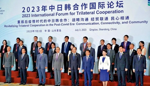 香港新聞網7月3日電 2023年中日韓合作國際論壇於7月3日上午在青島舉行。中共中央政治局委員、中央外事工作委員會辦公室主任王毅在論壇發表題為“把握正確方向,共同振興亞洲”的講話。“從青島發出中日韓合作重整行裝再出發的明確信號。”