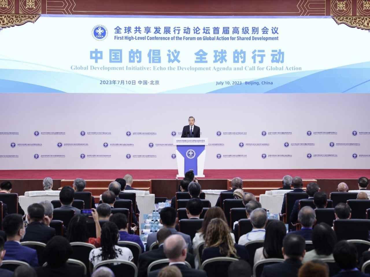 香港中通社7月11日電 全球共享發展行動論壇首屆高級別會議10日在北京舉行。中共中央政治局委員、中央外辦主任王毅宣讀了習近平主席的賀信,表明了中方欲推進聯合國2030年可持續發展議程,落實全球發展倡議,構建人類命運共同體。