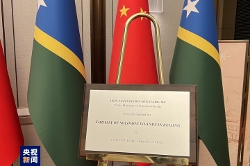 香港新聞網7月11日電 7月11日中午,所羅門群島駐華使館在北京舉行開館儀式。正在中國訪問的所羅門群島總理梅納西·索加瓦雷出席儀式。