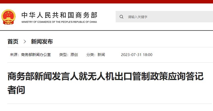 香港新聞網8月1日電 中國商務部網站消息,7月31日,商務部新聞發言人就無人機出口管制政策應詢答記者問。