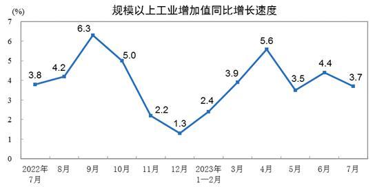 國家統計局:7月份規模以上工業增加值增長3.7%分享到: