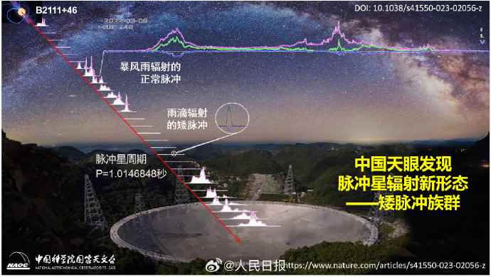 香港新聞網8月18日電 北京時間8月18日,國際科學期刊《自然·天文》發表了中國科學院國家天文台韓金林研究員領導的王綬琯巡天突擊隊的新成果,該團隊利用中國天眼FAST成功探測並解析了一批脈衝星B2111+46磁層中零星雨滴般的微弱矮脈衝輻射,這種矮脈衝輻射族群是國際上其他射電望遠鏡難以觀測的脈衝星輻射新形態,揭示了脈衝星輻射瀕臨熄滅時其磁層結構基本不變的物理事實。此次矮脈衝族群的發現為研究脈衝星輻射難題研究打開了一個新窗口,對揭示脈衝星磁層物理及其極端等離子體環境具有重要的科學意義。