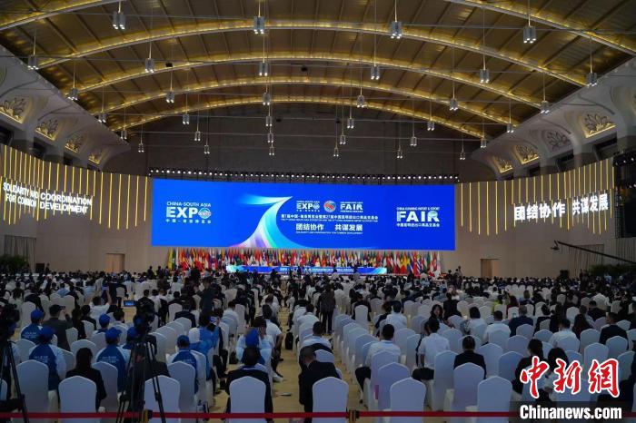 圖為第7屆中國-南亞博覽會8月16日在雲南昆明開幕。中新網記者 劉冉陽 攝 李晨陽介紹,第7屆南博會共設置15個展館,展覽面積15萬平方米,共有2050家企業、10063人線下參展,有89家世界500強企業、42家中國500強企業及68家境內外行業龍頭企業線下參展參會,參展國家(地區)數量位居中國同類展會前列。此外,本屆展會還舉辦專場活動、專業論壇、配套活動、系列活動等4類40場會期活動,涵蓋專業論壇、洽談簽約、產品推介、直播帶貨等形式,共有內賓約7000人次、外賓約600人次現場參會。 “在搭建招商引資平台方面,第7屆南博會吸引了一批重要客商,共達成簽約項目483個。”李晨陽說,其中,簽約投資項目342個、投資額4126.54億元人民幣,同比上屆增長2.2%;簽約商貿合同141個、金額105.11億美元,同比上屆增長3.9%。