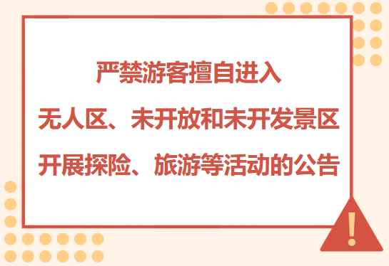 青海省地處青藏高原腹地、高寒地區,高山、草原、戈壁、沙漠大面積分佈,這些區域通訊信號微弱或無信號,人煙稀少,晝夜溫差大,極端氣候多,野外“危險區域”、“無人區”較多,地形環境復雜。如徒步或駕車進入無人區、未開放和未開發景區等野外區域將面臨難以預判的風險,隨時都會發生缺水、缺氧、迷途、陷車、失聯等生命危險,救援極為困難。為切實保障遊客安全,現就有關事項公告如下: 一、請遊客進一步增強自我保護意識,不擅自離開國省道、鄉村公路、旅遊公路,深入無人區、未開放和未開發景區等危險區域開展探險、旅遊和穿越等活動。 二、沒有經過相關部門批準或報備,嚴禁遊客非法進入自然保護區、生態紅線、水源地進行探險、旅遊等活動。 三、遊客出行要對路線進行研判、關注天氣預報、地質災害、交通情況等信息,加大物資儲備、做好車輛維護,切實保障旅行安全。 四、各旅遊公司、旅行社、民間組織、俱樂部等社會團體不經報備批準,不得以探險、穿越、科考為名組織旅遊團隊深入自然保護區。 五、各類人員和團體因私自探險、穿越自然保護區、無人區等而被困救援費用由相關人員和團隊全額承擔。 特此公告。 【編輯:丘志彬】