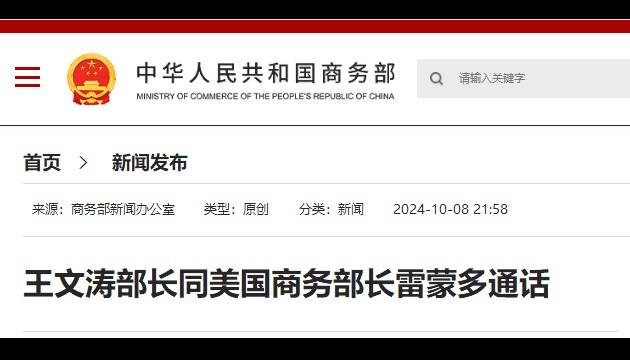 圖片源自中國商務部網站。 王文濤說,中方願意共同努力,為中美企業營造更有利的政策環境,以加強兩國企業的合作,以穩定和可預測的方式促進雙邊貿易和投資。 雷蒙多說,世界上最大的兩個經濟體保持穩定的經濟關係極為重要,全世界都期待美中兩國保持穩定的經濟關係。雷蒙多形容美中關係複雜而且具有挑戰性。雙方當然會在某些問題上存在分歧,但如果雙方直接、開放和務實,就能取得進展。 作為美方主管經貿事務的一把手,雷蒙多的中國之行受到多方關注。27日晚,雷蒙多乘機抵達北京,開啟為期4天的訪華行程。這是雷蒙多任內首次訪華,也是今年6月以來第四位訪華的美國政要。 在中美雙邊關係層面,經貿合作一直是“壓艙石”和“推進器”。中美兩國經濟總量超世界三分之一,對世界經濟增長貢獻率超50%,互利合作為兩國和世界經濟提供了持續的增長動力和發展機遇。 對此次訪問,中國商務部新聞發言人束珏婷此前稱,中方將就關切的經貿問題向美方表明立場,同時期待與美方就化解經貿分歧、推進務實合作進行深入討論。(完) 【編輯:丘志彬】