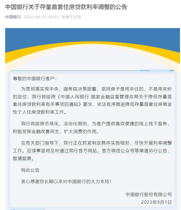 關於存量首套個人住房貸款利率調整 內地多家銀行發佈公告分享到: