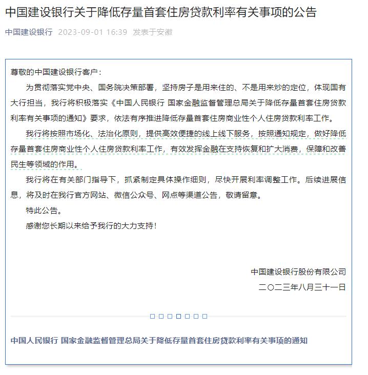 香港新聞網9月7日電 今天(9月7日),中國工商銀行、中國農業銀行發佈關於存量首套個人住房貸款利率調整的公告。