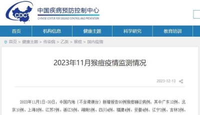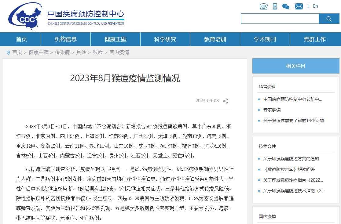 中疾控:8月中國內地新增報告501例猴痘確診病例分享到: