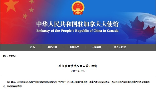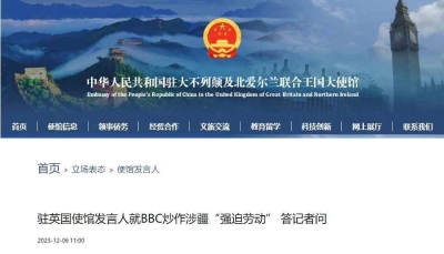使館發言人:所謂中方涉嫌“竊取英國情報”的說法完全是無中生有,惡意詆毀,我們堅決反對。我們敦促英國有關方面停止反華政治操弄,停止這種自導自演的政治鬧劇。