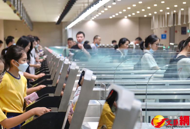 青茂口岸在今年暑假客流連續5次刷新本年度最高紀錄。(香港文匯網記者 方俊明 攝) 青茂邊檢站邊檢處處長吳珣表示:“在剛剛過去的暑假中,口岸客流連續5次刷新本年度最高紀錄,其中8月19日,單日出入境客流達到10.9萬人次,為近期峰值。”還值得一提的是,青茂口岸24小時開放,2年來,在凌晨0時至上午8時時段累計驗放出入境旅客超過670萬人次,為粵港澳大灣區的互聯互通增添了動能。 開設全國首批跨境學童合作快捷查驗專道 珠澳跨境學童則是青茂口岸出入境旅客中的一個特殊群體。據統計,僅今年1至8月,經青茂口岸出入境的跨境學童累計超100萬人次。 為提升跨境學童通行效率,降低候檢時間,青茂邊檢站在口岸開設了低工位學童人工查驗通道和全國首批跨境學童合作快捷查驗專道。跨境學童合作快捷查驗專道自今年5月啟用以來,已有約20萬人次學童享受到該通道的便利。 【編輯:丘志彬】