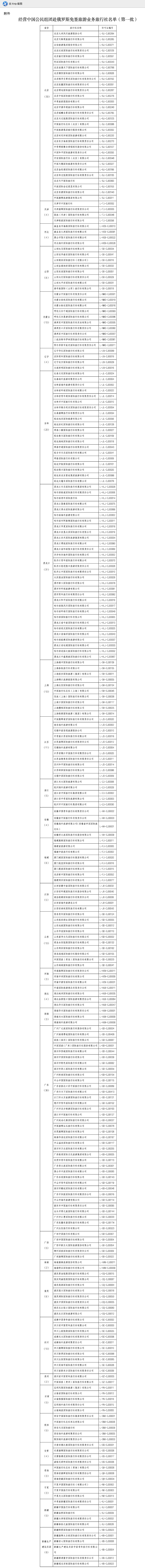 經營中國公民組團赴俄羅斯免簽旅遊業務旅行社名單(第一批)