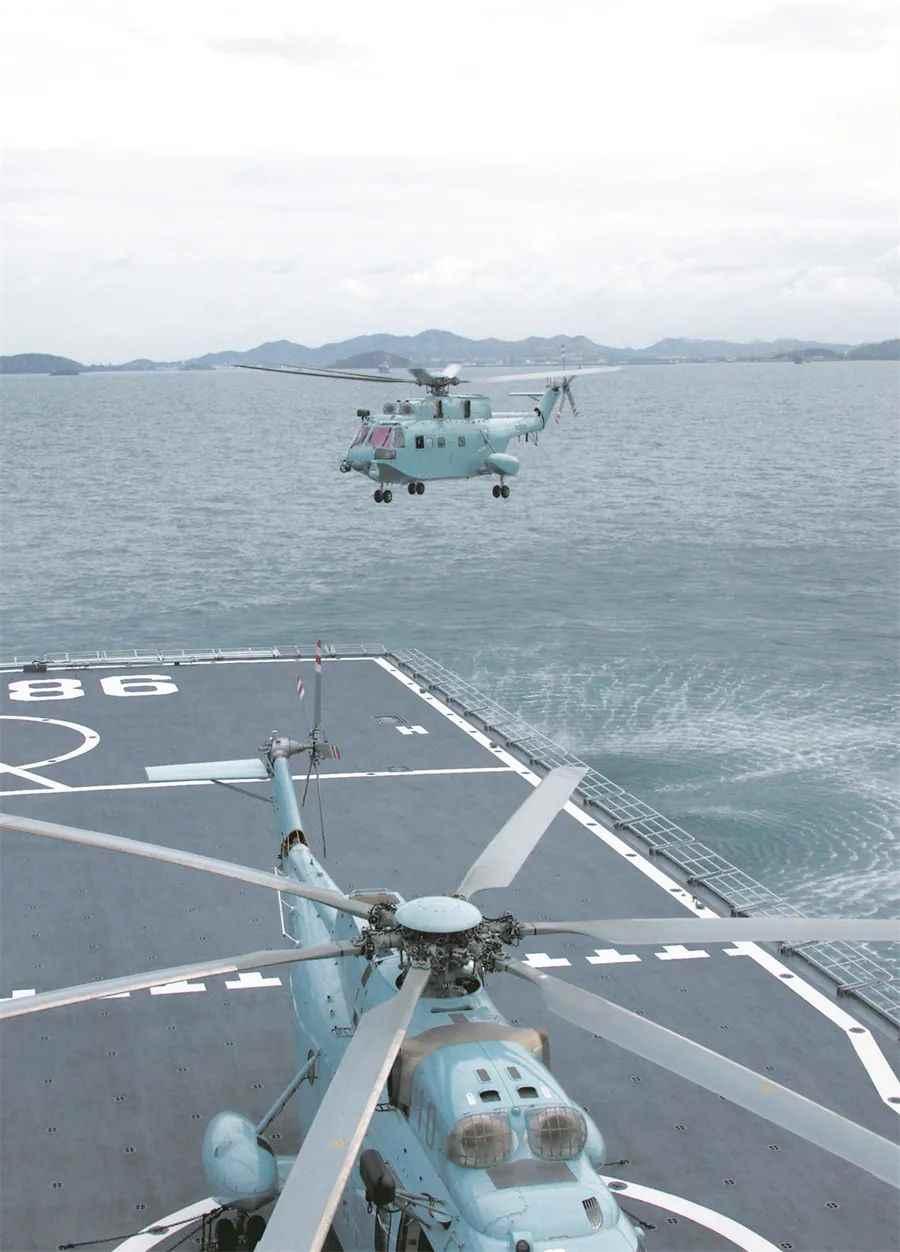 直升機從艦艇甲板上起飛。解放軍報記者孫興維攝