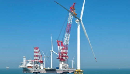 三峽集團福建分公司平潭海峽電力運行部經理 王建波:面對年有效施工窗口期不足四個月的情況下,(我們)成功安裝了13兆瓦、16兆瓦兩台超大容量風機,短時間內兩次刷新“全球最大單機容量”海上風電機組吊裝記錄。