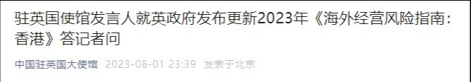 英方發表《香港問題半年報告》,中使館回應分享到: