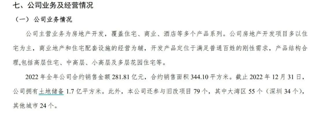 此前,8月10日晚,恒大地產連發多份報告,包括2022年債券年報、2022年債券半年報、2021年債券年報,還有恒大地產2022年和2021年的年度審計報告及2022年半年度財報。 財報數據顯示,恒大地產2022年度的凈虧損人民幣527.20億元,截至2022年12月31日,流動負債合計人民幣16,787.47億元,而公司的貨幣資金(包括現金及現金等價物和受限資金)總額為人民幣91.73億元。 公司總負債18,338.19億元,總資產14,685.57億元,已資不抵債。 報告顯示,截至2022年末,恒大地產擁有土地儲備1.7億平方米。恒大地產表示,將集中全力推進復工復產和保交樓工作,爭取各地區政府和上下遊合作夥伴等各方的理解和支持;加大資產處置力度,努力盤活資金;精簡機構、優化人員和薪資結構,進一步節約成本;中國恒大集團與境內外債權人積極溝通,聘請財務顧問評估公司情況,探索對所有利益相關方最優的整體債務解決方案。 報告顯示,2022年全年恒大地產合約銷售金額281.81億元。截止2022年12月31日,公司擁有土地儲備1.7億平方米。此外,本公司還參與舊改項目79個,其中大灣區55個(深圳34個),其他城市24個。