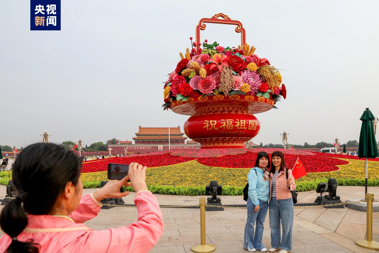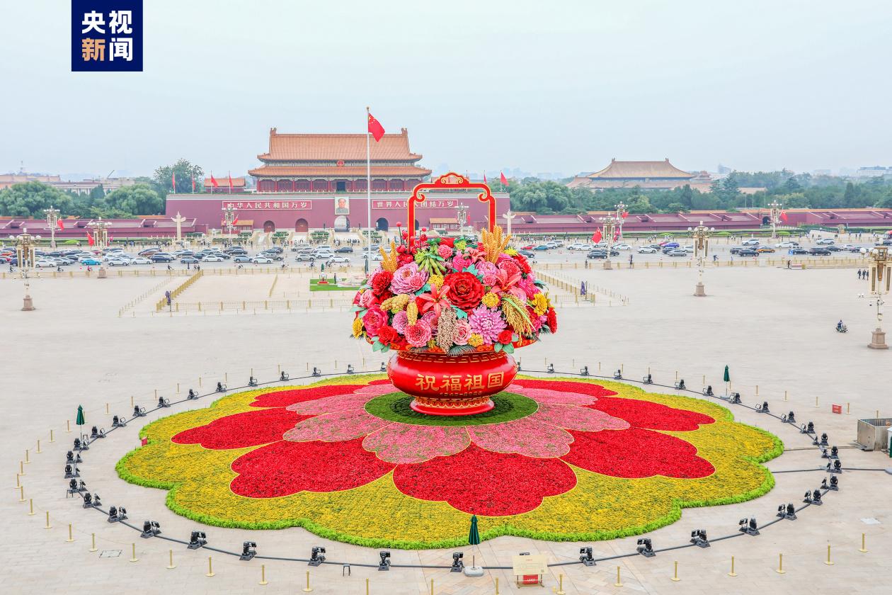 “祝福祖國”巨型花籃亮相 天安門廣場和長安街沿線國慶花卉布置完工分享到: