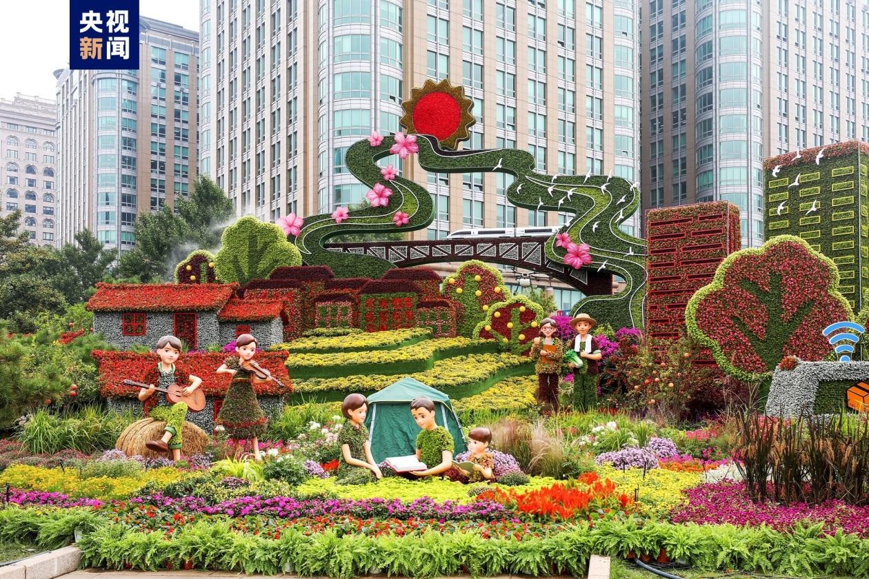 今年廣場花籃首次裝入象征豐收的五谷元素(水稻、小麥、小米、黃米、大豆),花籃內的花卉等部件均使用阻燃、抗風材料進行3D打印,有效保障安全性、穩定性和觀賞性。廣場兩側綠地布置5050平方米吉祥如意花帶圖案,花球18個。長安街建國門至復興門之間布置10組不同主題的立體花壇,50多個國內自主知識產權新品種、國外引進新品種和鄉土植物在長安街花壇中首次應用,描繪出全面推進中華民族偉大復興的宏偉藍圖和人民群眾不斷提升的獲得感、幸福感的美好畫面。長安街、三里河路、阜成路、機場路四條重點道路布置容器花卉100組、地栽花卉2萬餘平方米、花拱花球40餘個,為市民遊客營造花團錦簇的節日氛圍。 【編輯:丘志彬】