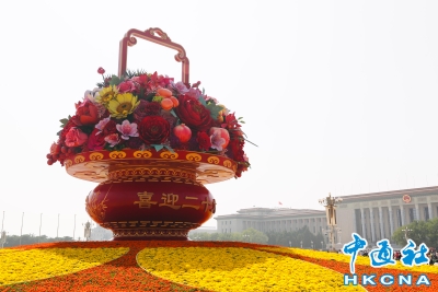 香港新聞網9月25日電 據北京市園林綠化局消息,9月25日,“祝福祖國”巨型花籃亮相天安門廣場。長安街等重要區域綠化布置也同期完工。