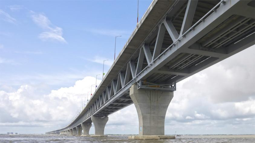 這是2022年6月25日拍攝的孟加拉國帕德瑪大橋。新華社圖片 這條被當地人稱為“夢想之路”的鐵路全線長約170公里,本次開通的首通段全長約80公里。 孟加拉國總理謝赫·哈西娜在開通儀式上致辭時表示,本次通車標志著乘坐火車跨越帕德瑪河的夢想成真,使首都達卡與孟中部和西南部地區的交通更加便利。她強調,孟政府的目標是在全國範圍內建立廣泛的鐵路網絡,並將孟鐵路與泛亞鐵路連接起來。 中國駐孟加拉國大使姚文致辭說,帕德瑪大橋鐵路連接線是共建“一帶一路”的標志性項目,孟加拉國是南亞首個同中國簽署共建“一帶一路”合作諒解備忘錄的國家,中方鼓勵更多中國企業赴孟投資,助力孟實現“2041願景”和“金色孟加拉”夢想。 據介紹,帕德瑪大橋鐵路連接線項目採用無砟軌道等中國先進技術,建設高峰期雇用當地員工1萬多人,培訓孟加拉國技術工人2萬多人,有力促進了沿線地區經濟發展。 【編輯:馬華】
