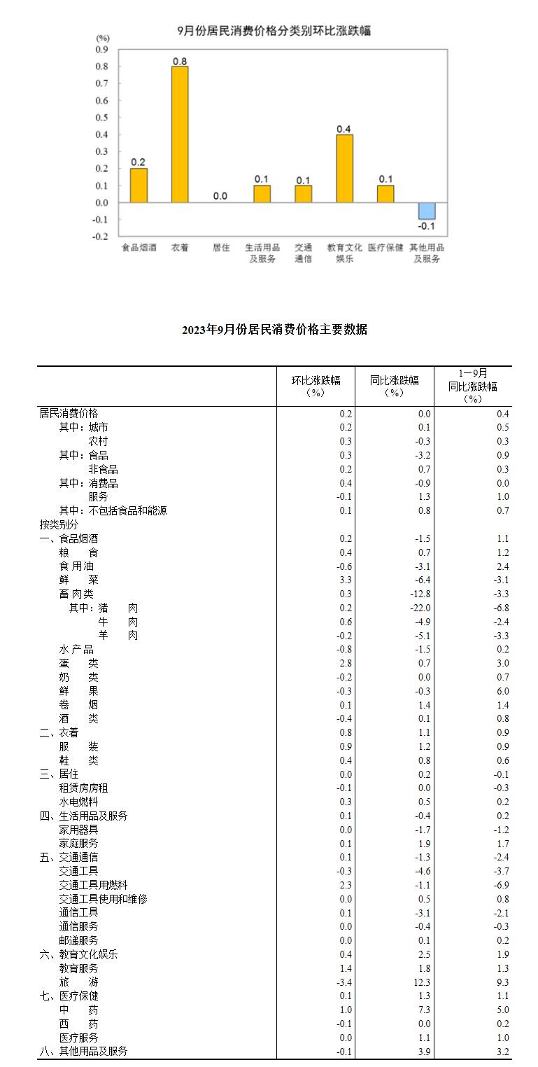 國家統計局:9月CPI同比持平,環比上漲0.2%分享到: